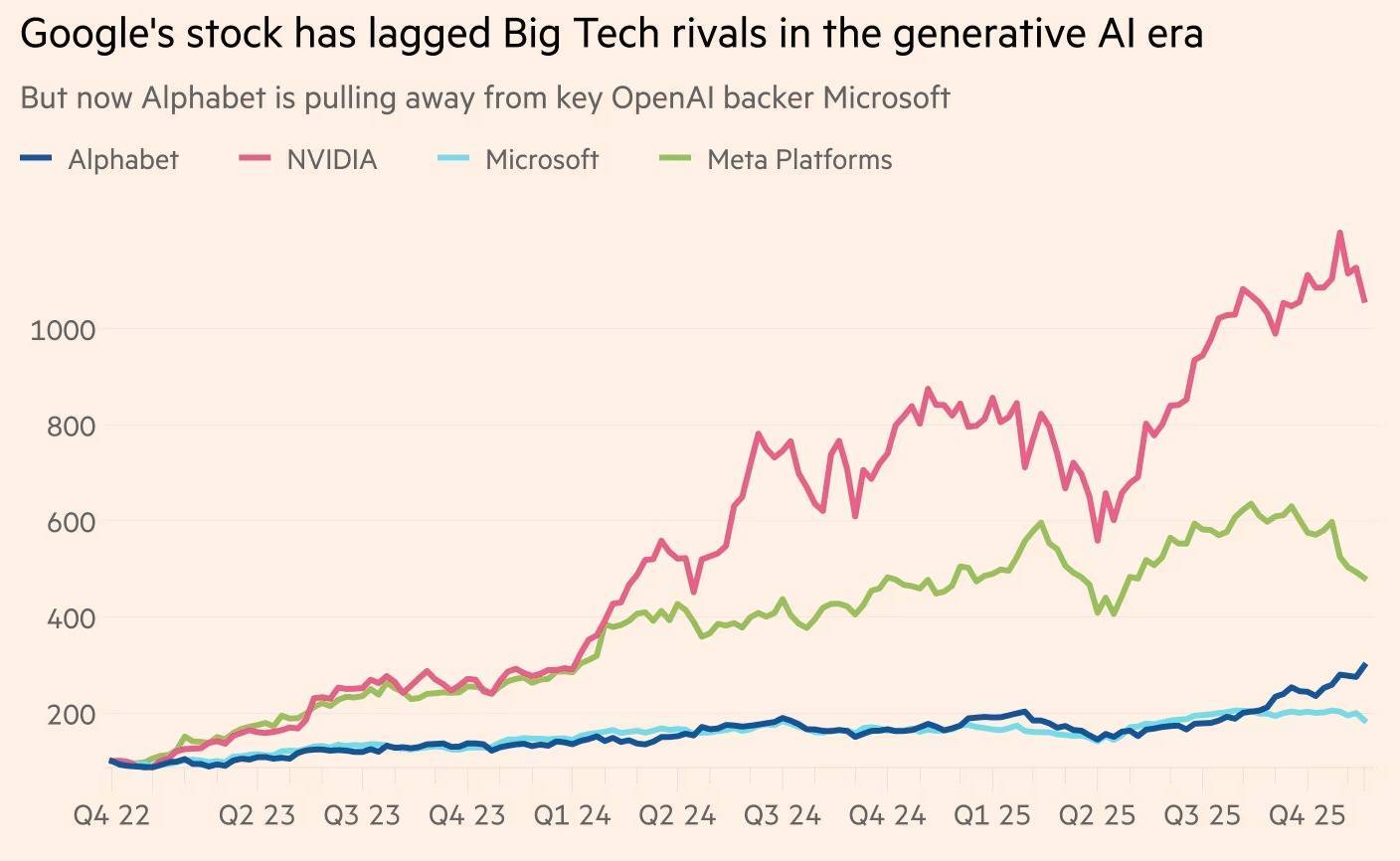 就在一年前,许多人还曾认为,谷歌为缩小OpenAI巨大领先优势而付出的努力注定失败。在2023年至2024年由AI推动的股市上涨行情中,由于市场担忧谷歌的摇钱树搜索引擎会被ChatGPT及Perplexity等新型AI搜索应用侵蚀,其母公司Alphabet的股价一直远远落后于其他科技巨头。