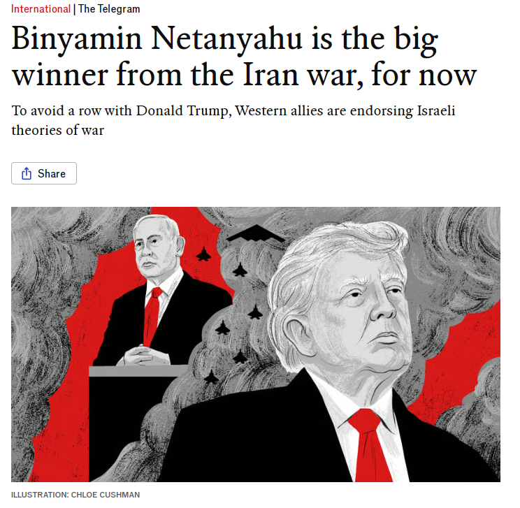 “一场豪赌正在伊朗上演” 另一篇题为《本雅明·内塔尼亚胡是目前伊朗战争大赢家》的文章称,一场豪赌正在伊朗上演。这场赌博对伊朗人民、整个中东乃至全世界都意味着巨大的风险。输家可能很多,首先就是普通伊朗民众。 然而在这充满变数的首日,一个早期赢家已然显现——以色列。 针对伊朗的军事行动虽依赖美国军事力量,却在很大程度上受制于以色列的战争理论。以色列的胜利法则可概括为:不经警告发动攻击,使用压倒性武力,毫不犹豫地消灭敌方领导人。 2月28日美以联合打击伊朗时,行动的核心要素即体现了以色列逻辑——从刺杀伊朗高层领导开始。这标志着美国立场的转变。首任任期内规避风险的特朗普总统曾拒绝以色列总理内塔尼亚胡关于推翻伊朗政权的建议。如今呼吁民众反抗暴政,至少在特朗普看来颇具政治光彩。当特朗普敦促伊朗民众起义时,他实际上是在呼应内塔尼亚胡长久以来的论调——尽管这位美国总统同样频繁地流露出与伊朗统治精英中的叛徒达成交易的意愿。 2003年入侵伊拉克前,西方曾产生严重分歧而导致分裂。至少当时美国总统小布什还试图争取联合国对战争的背书。如今的美国行动前不再寻求此类授权。一个以强权即正义的秩序正在形成,特朗普和内塔尼亚胡驾轻就熟地驾驭着这个秩序。大多数西方盟国从未渴望过这样的世界。但既然它正在到来,他们不得不适应其规则。《经济学人》报道截图